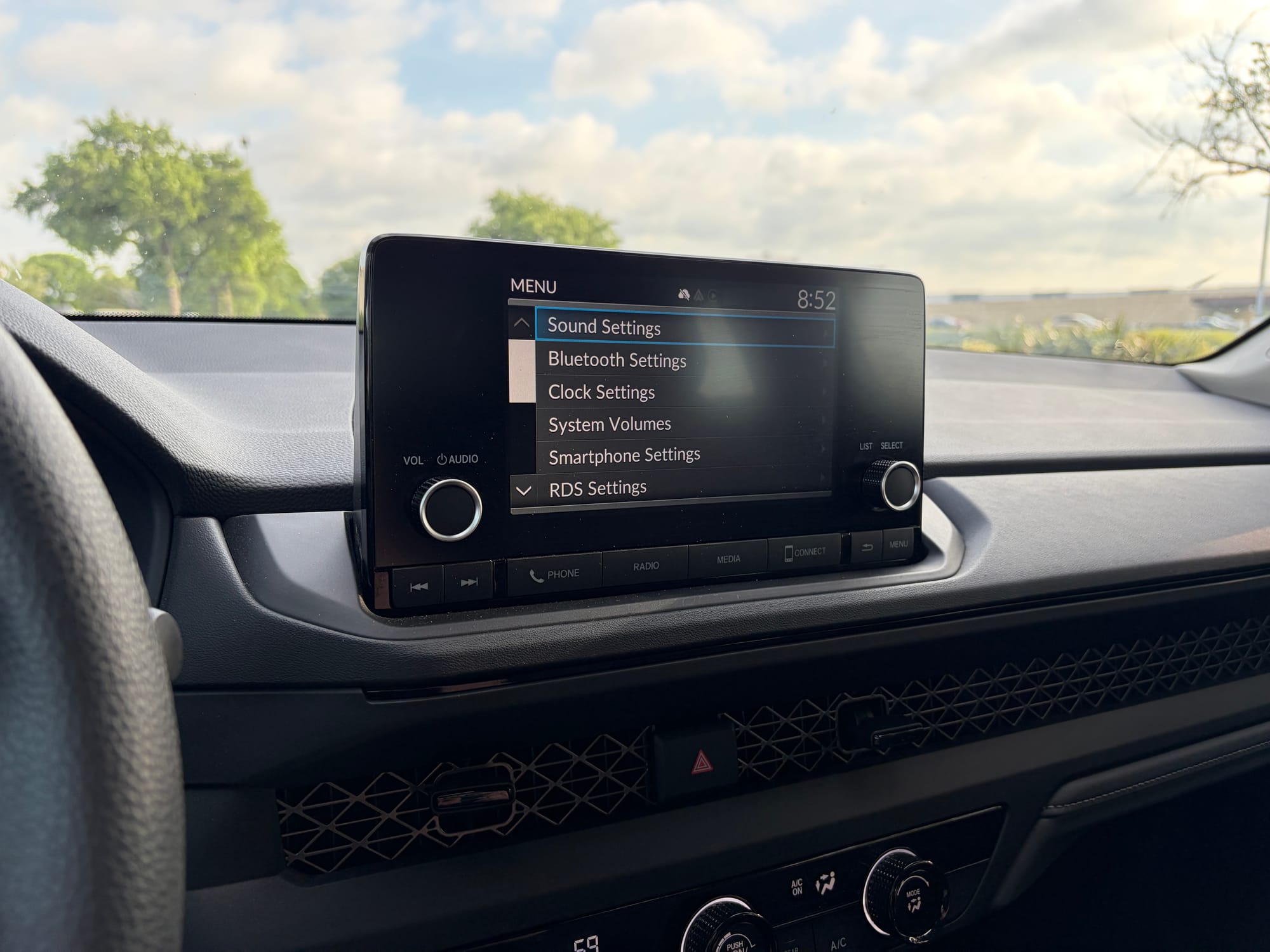 Here's where I'll be direct: the infotainment screen is small and at an awkward angle. Rather than angling toward the driver, the display sits more perpendicular — like it's trying to address both front seats equally and doesn’t fully satisfying either. In practice, it means more neck movement than you'd want when glancing at navigation, which is a legitimate ergonomic miss. It's the most notable frustration I had with the cabin.
